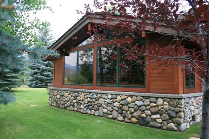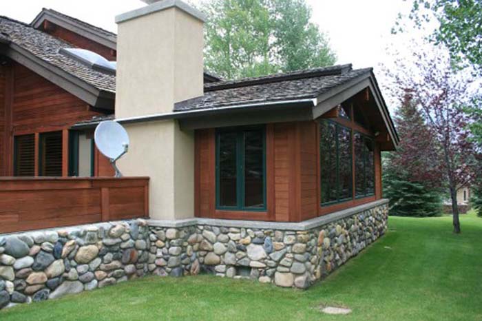 For this project in Sun Valley Idaho, we created an entirely new addition for a spacious home office. The home features river rock throughout parts of the exterior of the house. We renovated the master bath which included a full sauna.